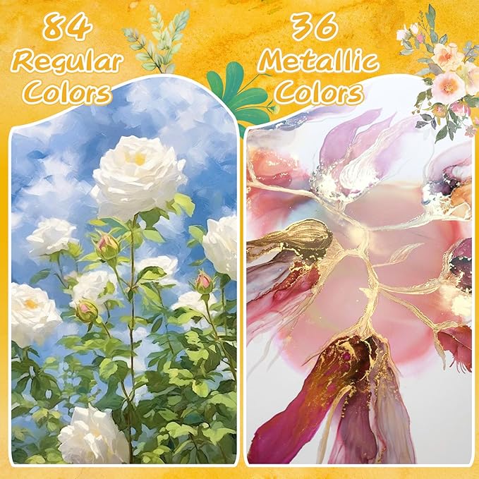 • 【139 PCS All in One Art Kit】The Premium watercolor set includes 84 regular colors, 36 metallic colors, 4 pastel colors, 4 fluorescent colors, 1 water brush pen, 3 detail paintbrushes, 1 art sponge, 1 swatch sheet, 1 nylon paintbrush, 1 HB pencil, 1 rubber, 1 pencil sharpener, 1 transparent palette, total 139 pcs!