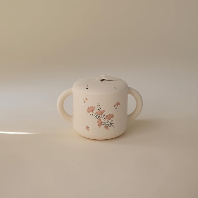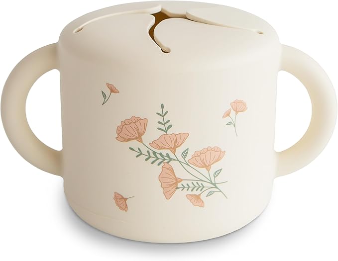 mushie Silicone Snack Cup | Spill Proof Food Container for Toddler and Baby (Pink Flowers)
