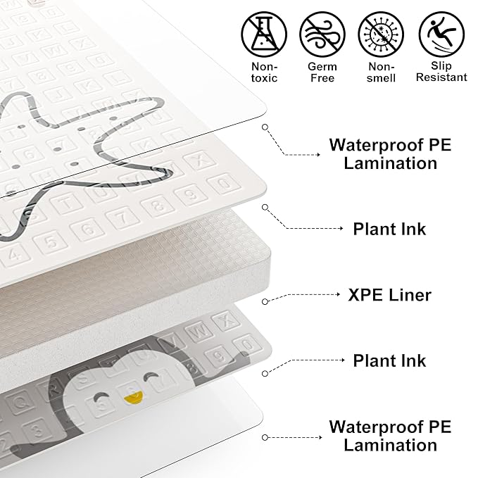 • Easy to Clean and Waterproof: Our tummy time mat has a water-resistant surface, easy to clean, low maintenance cost, simply wipe with a damp towel to remove spills, stains, and dirt, providing a sanitary play space for your children