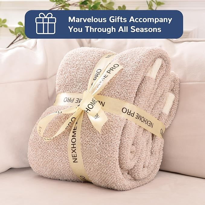 NEXHOME PRO Soft Blanket for Women, Twin Size Cozy Blanket Warm Reversible Knit Lightweight Throws for Sofa Bed, Picnic, Heather Terracotta, 60 x 80 inches