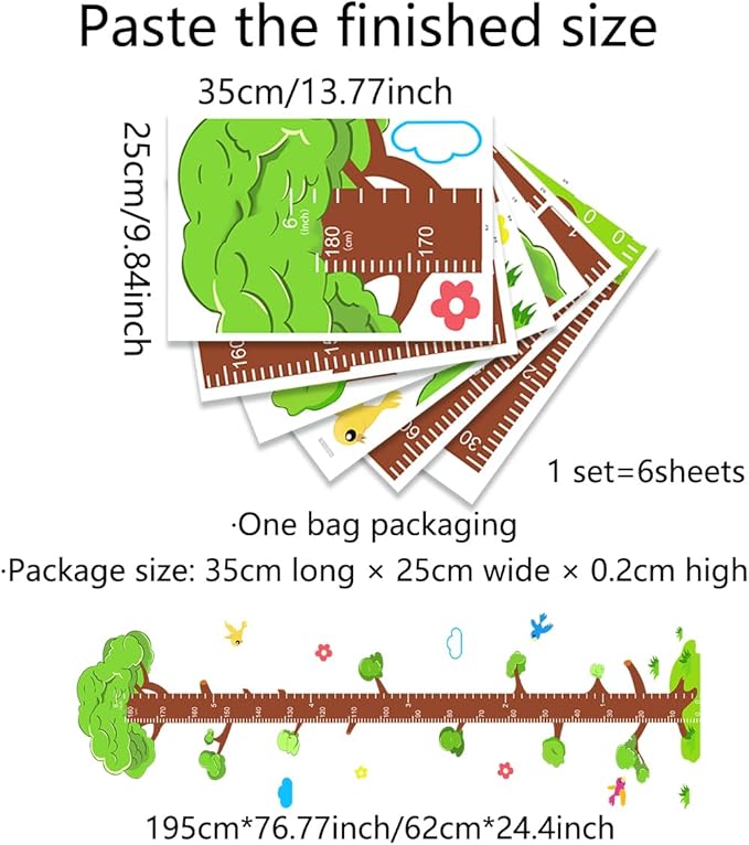 • Creative Height Ruler: It is not only wall decor decal for kids room, but also a record chart for the growth of boys and girls. The scale start from 10cm and ends at 180cm.