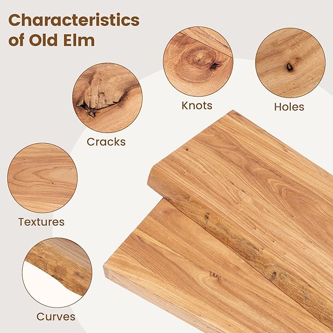 • UNIQUE ELM WOOD SHELVES: Handcrafted from reclaimed elm wood, each Venusmiles floating shelf showcases the natural beauty of wood knots, grain, and texture. The rustic, natural finish adds a unique touch to any living space, making it a distinctive addition to your home decor.