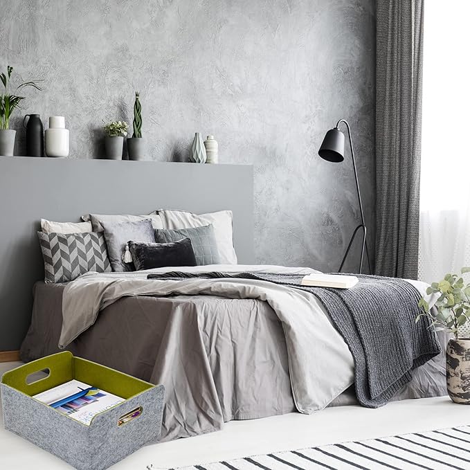 • 【Sustainable material】 Recycled felt with comfortable touch feeling, soft to prevent scratching,flexible for space saved up on desk, office ,bedroom, closet ,kitchen,bathroom or anywhere you desire with these stylish storage and organizer bins.