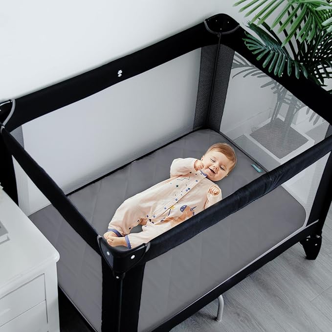 Pack and Play Sheets Fitted Waterproof Pack and Play Mattress Protector Pad Cover 2 Pack Gray Quilted 39" x 27"