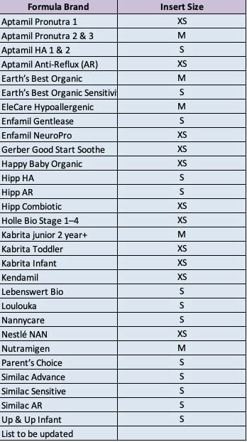 • Universal Compatibility - Works with virtually all formula brands and all bottles. Davijo comes with 4 interchangeable inserts that have different outputs, as the formula scoop measurments varies slightly between the different brands. Choose the correct insert for your prefferd brand. Please see out recommandation Chart to select the correct insert.