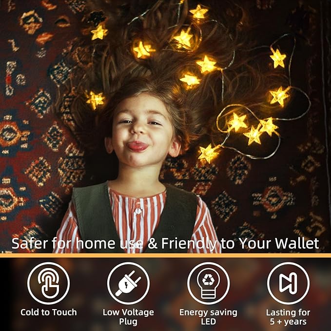 • Perfect for Any Decor: Ideal for decorating bedrooms, living rooms, gardens, patios, classroom , Christmas and more. Hang them around windows, walls, furniture, trees, or pergolas to instantly transform your environment into a starry paradise. These lights make an excellent gift for home decor enthusiasts who appreciate both style and functionality.