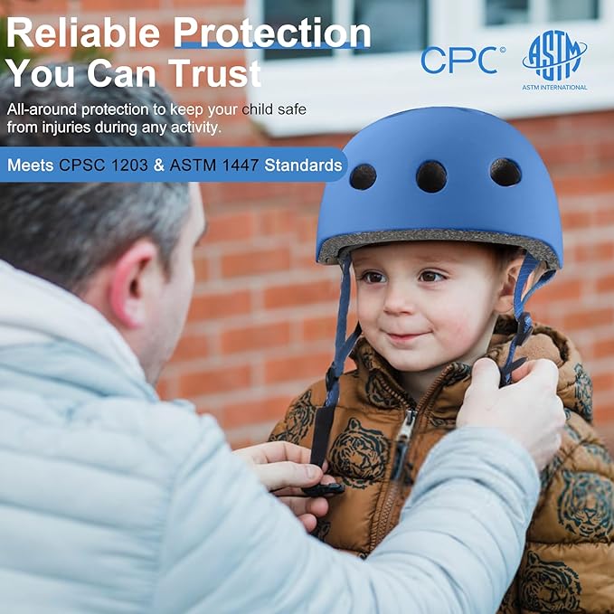 • INNOVATIVE CHIN PROTECTION: The toddler helmet includes an upgraded chin pad guard that prevents skin pinching, maximize the best fit and comfortable wearing, perfectly for boys and girls 3-5-8 years old. Toddler helmet size: 18.89"-21.25”, one kids helmet set can be used for a few years