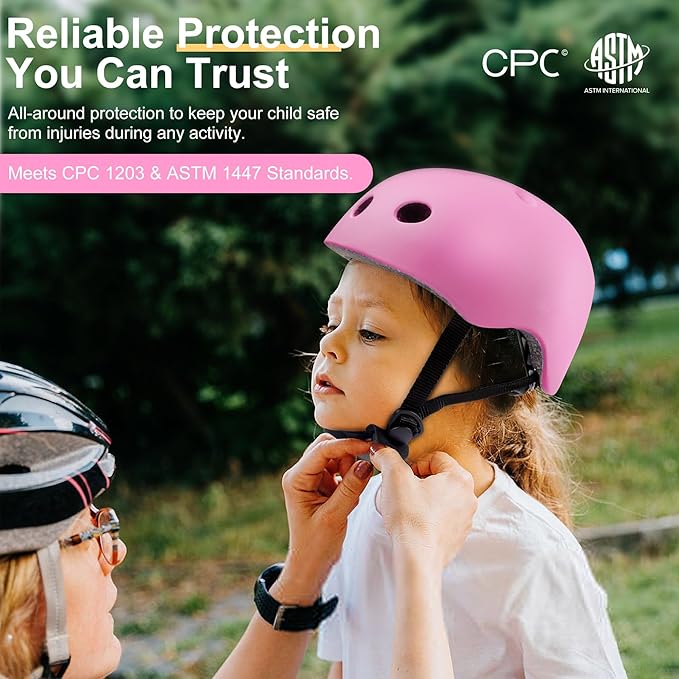 • Certified for Safety: Our helmet meets U.S. Consumer Product Safety standards, with dual certifications from CPSC 1203 and ASTM 1447, guaranteeing reliable protection. The adjustable head circumference (18.89"-21.25"/48-54cm) and easy-to-use dial adjustment system make it perfect for children aged 3-8