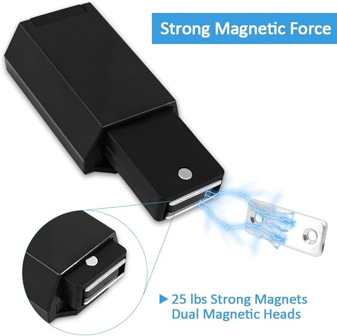 • Durability and Sturdy: The magnetic cabinet latch crafted from thickened plastic, enhances sturdiness. Good performance in use comes with the strong magnet force and spring, durability and wear resistance. Providing a long-term cabinet latches solution