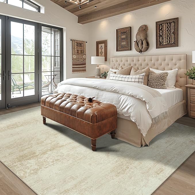Washable Rug 6x9 Area Rugs, Abstract Large Living Room Rugs with Non-Slip Backing, Thin Carpet for Dorm Dining Room Table Nursery Indoor Home Office -Beige