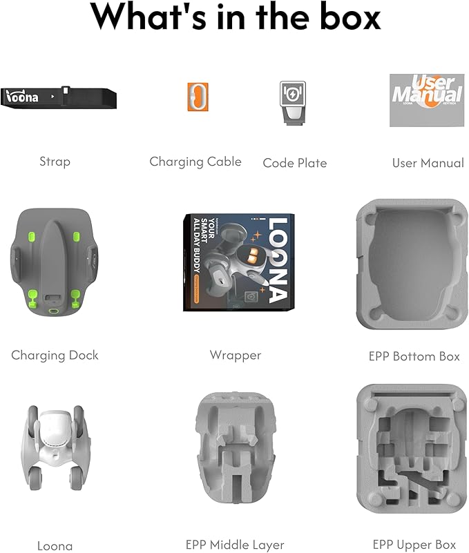 • ๐Ÿค– Smart and Interactive Robot Pet๐Ÿง Loona is like no other pet you've seen. With a high-definition RGB camera, Loona sees and understands your world. Loona recognizes faces, understands your gestures, and follows you like a real puppy! Please take Loona to a well-lit environment and ensure the surfaces of the camera and ToF depth sensor are clean.