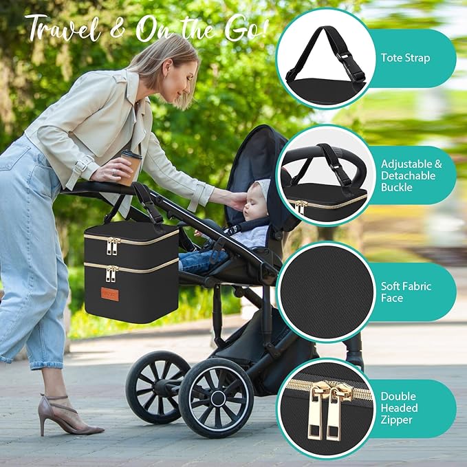 • Double Layer & Dual Compartment Design: The bottom cooler room with an ice pack that will keep breastmilk, drinks, or baby food fresh for hours. And it can fits 4 large baby bottles up to 5 ounces. The top compartment layer provides some space and you can breastmilk storage bags, baby squeeze pouches, baby snack container box or baby food storage jars...