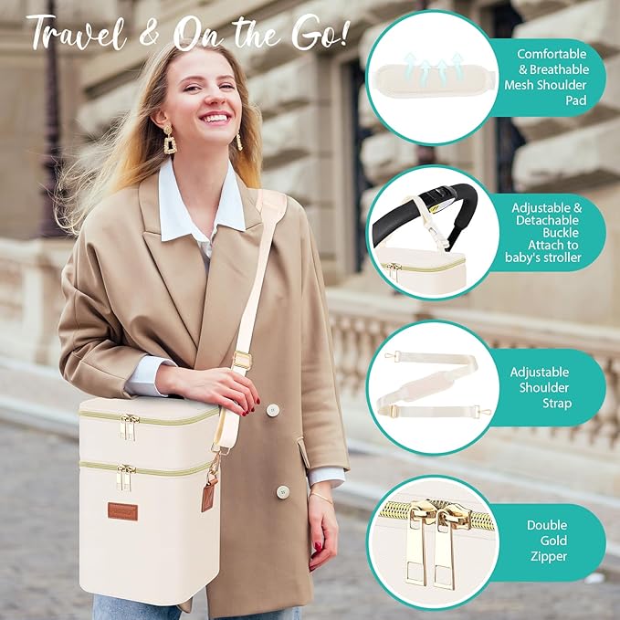 • Breastfeeding On The Go for Moms: The Top adjustable & detachable buckle can easily attach to the baby's stroller, and the adjustable shoulder strap with a soft pad keeps your shoulders comfortable, release your hands, and easy to carry or transport when you have a picnic, traveling, shopping, or take an airport. A must-be baby essential gift to working moms or busy women stores breastmilk for nursing babies.