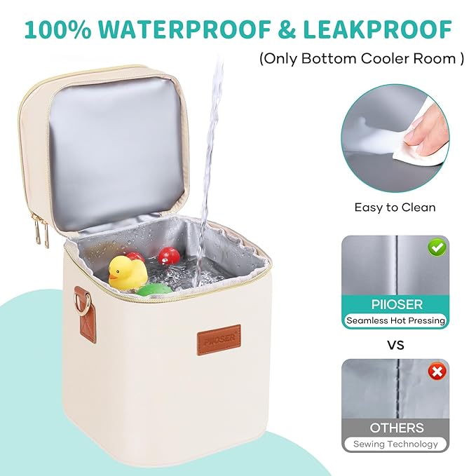 • Double Layer & Dual Compartment Design: The bottom cooler room with an ice pack that will keep breastmilk, drinks, or baby food fresh for hours. And it can fits 4 large baby bottles up to 9 ounces. The top compartment layer provides some space and you can breastmilk storage bags, baby squeeze pouches, baby snack container box or baby food storage jars...