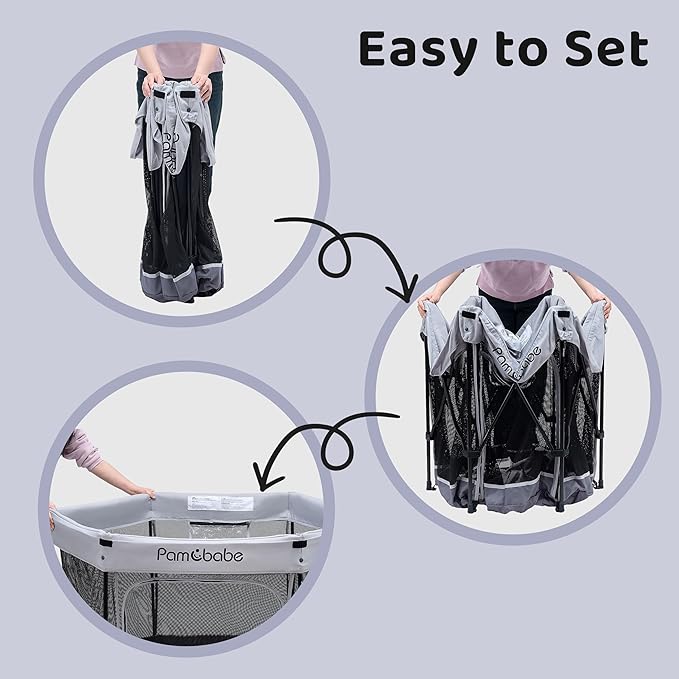 Pamo Babe Baby Playpen with Sun Protection Canopy - Indoor & Outdoor Play Yard for Babies and Toddlers - Baby Tent with Zipper Door