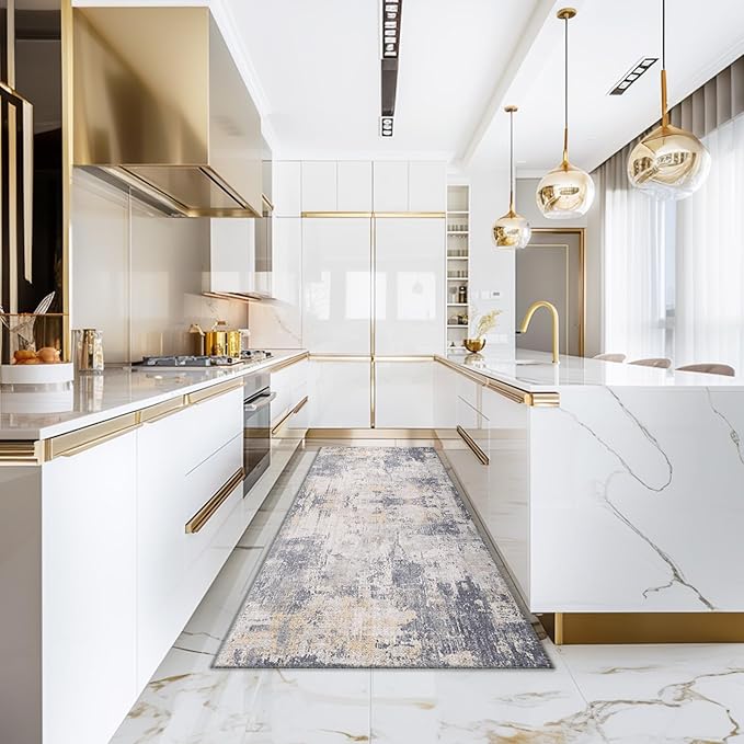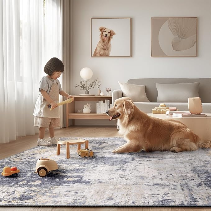 • Tides Series – Effortless style that flows with your life.This modern machine-washable non-slip rug features reinforced edges and a low-pile design that resists dirt. Its water-repellent surface makes spills easy to clean - liquids bead up for quick wiping. Simply machine wash in cold water (no bleach) to refresh. The non-slip backing keeps it securely in place. A perfect blend of function and contemporary design for active homes.