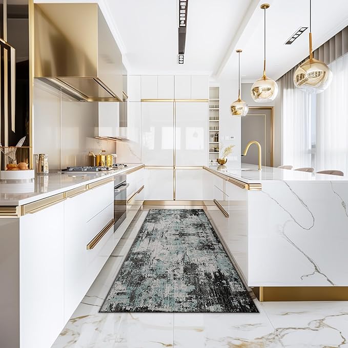 Washable Area Rugs 2'x8' Non-Slip Modern Abstract Soft for Living Room Entryway Bedroom Nursery, Print Pattern, Blue Black Teal