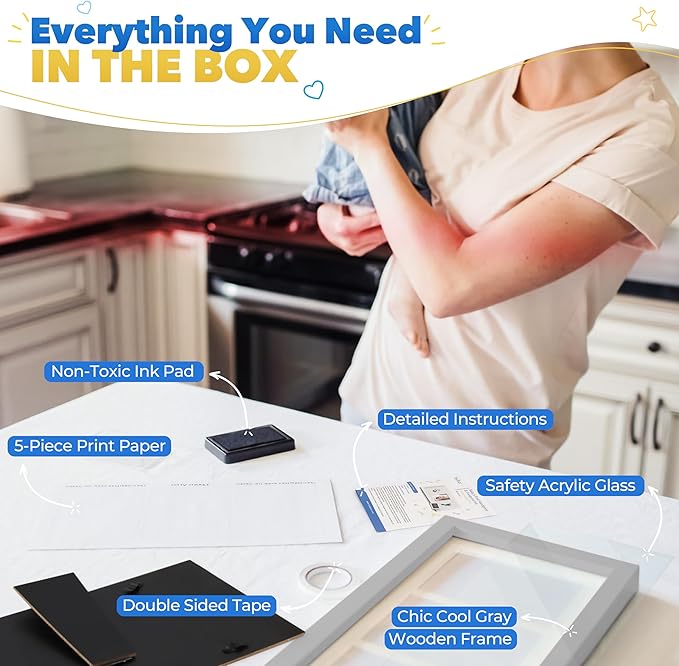 • Make Lasting Memories: A baby hand print & foot print kit makes priceless first memories for a new mom & dad. Gifts for new moms after birth are often discarded over time but with a newborn picture frame you can capture memories that will last a lifetime.