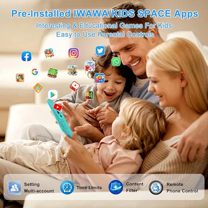 • 【Pre-Installed Parental Control & Educational Game】Z138 Kids Tablet is pre-installed with iwawa APP & Kids Space, which includes Montessori, Brain Training and other educational games for children over 2+ years old, so kids can learn and grow in a happy way,and age filtering ensures that kids of different ages only see filtered content. The easy-to-use Parental Control & Remote monitoring ensures always providing your kids a safe and clean online environment for having fun, no need to constant supervision. Anti-blue light, eye protection mode and blackout mode can reduced the screen flicker and the damage to the eyes caused by irritating blue light, maximize to protect children's vision.