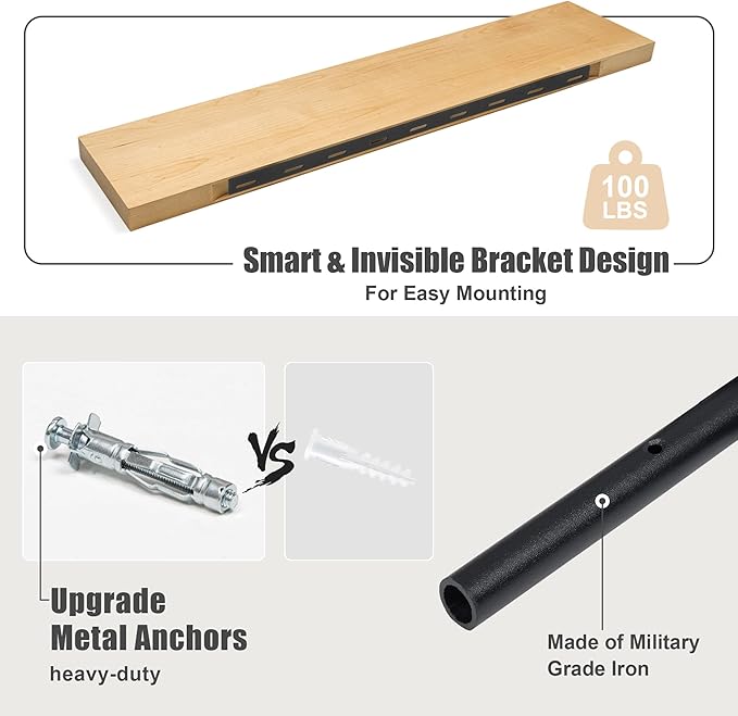 • EASY TO INSTALL: To ensure long-lasting durability, we recommend mounting the shelf onto a solid surface such as a stud, masonry (concrete/brick), or any robust surface. Hardwares are included, with our upgraded metal bracket, installation is quick and easy. All you need is a drill and a tape measure.