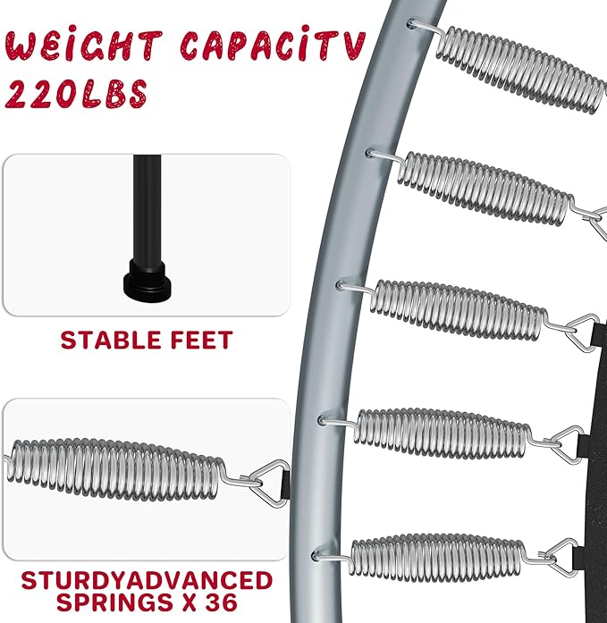 • Enclosed Netting: The trampoline comes with a high-quality safety net enclosure, preventing accidental falls and providing a worry-free jumping environment for your children.