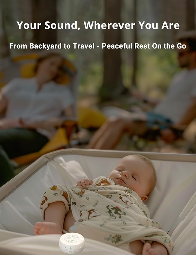 • 36 Soothing Sound Options: Includes white, pink, brown, and green noise; fan, train, campfire, ocean, rain, brook, birds, lullabies, and nature sounds; supports sleep, focus, or daytime breaks for babies and adults