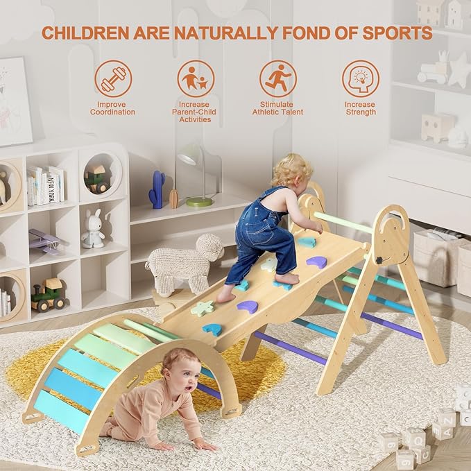 • 🔰【Safe Certification】Baby Wooden Indoor Clambing Toys are made of FSC-certified wood to ensure safety and environmental sustainability. Our toddler climbing toys meet ASTM F963-17 and CPSIA standards. Children's safe play is our top priority.