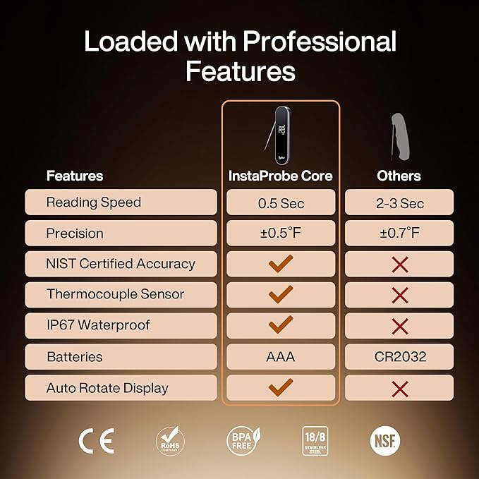 • #๐Ÿญ ๐—ถ๐—ป ๐—”๐—ฐ๐—ฐ๐˜‚๐—ฟ๐—ฎ๐—ฐ๐˜† | The most precise thermometer for cooking which is NIST-certified accuracy at ยฑ0.5ยฐF for the most precise culinary creations.