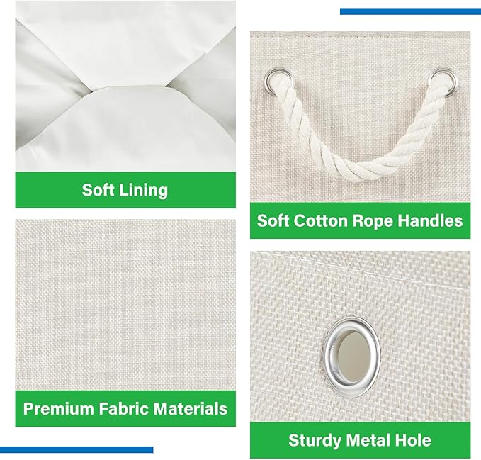 • Cotton Rope Handles & Premium Fabric: Soft handle will give you a very comfortable grip feeling, will not feel strangled hands, more easier to use the linen basket. The canvas storage bins equipped with soft and sturdy handles for moving conveniently. Sturdy soft handles on both sides are convenient to retrieve from shelves. These closet storage baskets are made of durable fabric which is strong and lightweight