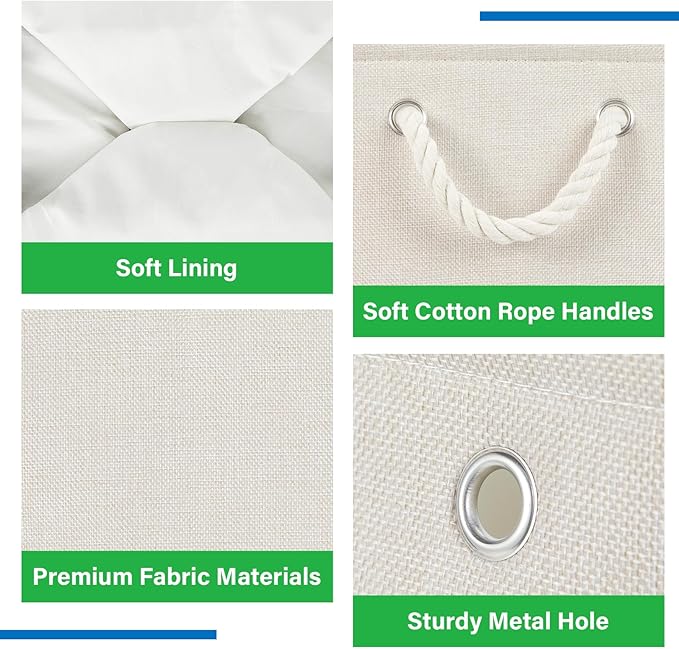 • Cotton Rope Handles & Premium Fabric: Soft handle will give you a very comfortable grip feeling, will not feel strangled hands, more easier to use the linen basket. The canvas storage bins equipped with soft and sturdy handles for moving conveniently. Sturdy soft handles on both sides are convenient to retrieve from shelves. These closet storage baskets are made of durable fabric which is strong and lightweight