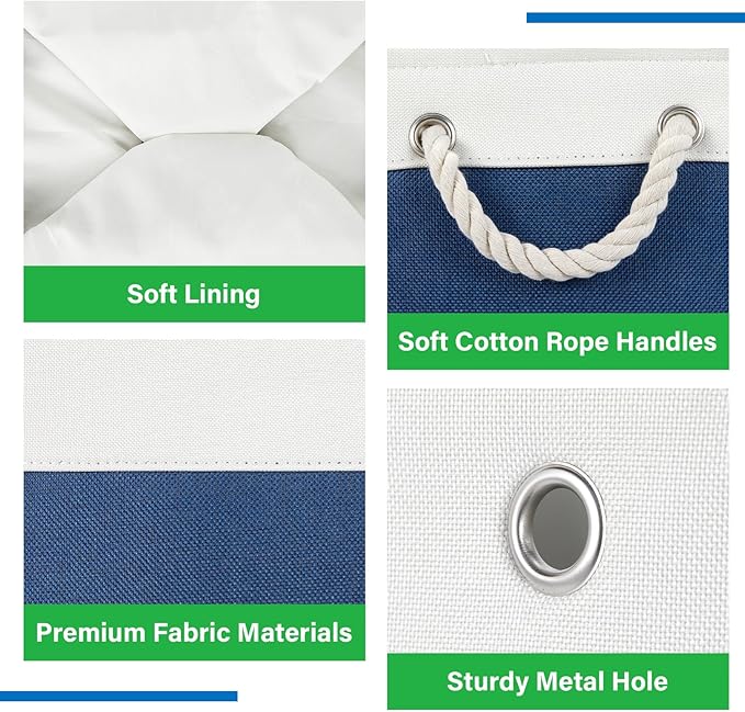 • Cotton Rope Handles & Premium Fabric: Soft handle will give you a very comfortable grip feeling, will not feel strangled hands, more easier to use the linen basket. The canvas storage bins equipped with soft and sturdy handles for moving conveniently. Sturdy soft handles on both sides are convenient to retrieve from shelves. These closet storage baskets are made of durable fabric which is strong and lightweight