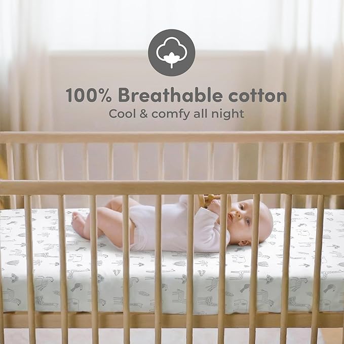 • Perfect Fit for All Crib Sizes: Each set includes two crib sheets that are designed to perfectly fit standard crib mattresses (52” x 28”) as well as mini cribs and toddler beds. The sheets fit mattresses with a height of 3” to 8”, ensuring a snug and secure fit.