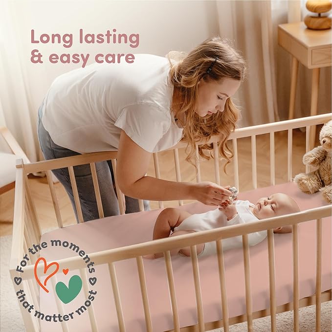 • Easy to Use & Maintain: Our fitted crib sheets girl feature a snug fit design, making them easy to put on and take off without hassle. The stretchy fabric ensures a smooth fit on the mattress, while the high-quality elastic band keeps the sheets securely in place.