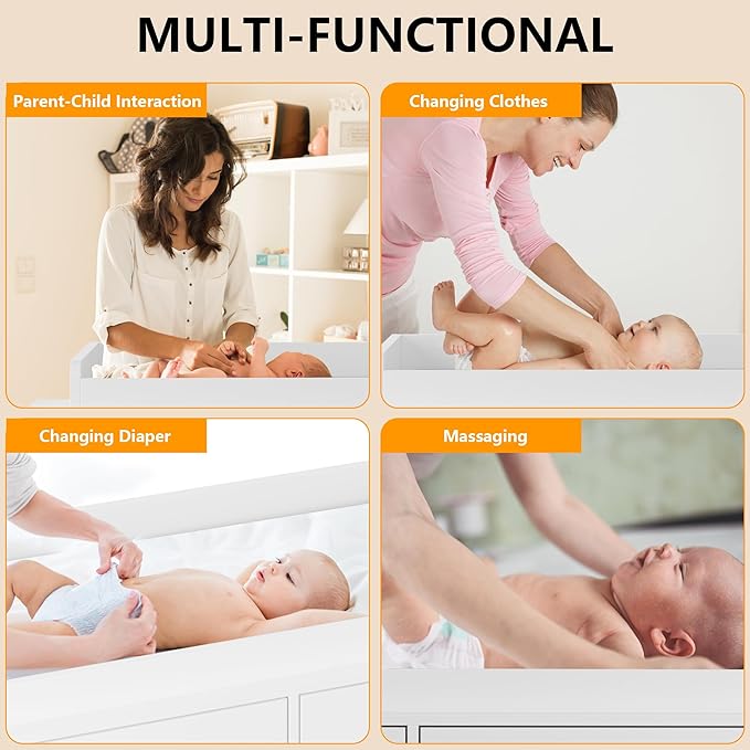 • 【Versatile Changing Table】This smart design seamlessly transitions between a diaper changing table and 6 drawer dresser, featuring a removable changing top and soft pad for easy diaper changes. As your little one grows, simply detach the top to convert it into a functional storage organizer for extended use.
