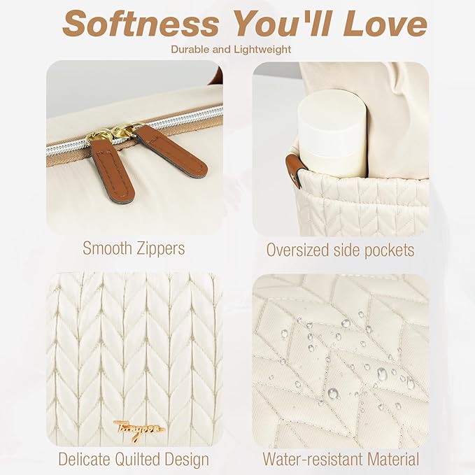 • Soft Materials:Tonyeee diaper bag with 3D herringbone nylon quilting,achieve a perfect blend of practicality and fashion. While studded feet in the bottom keep the bag clean and off the ground