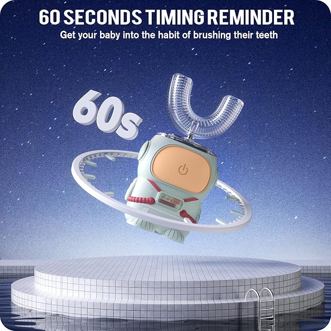 • (Green,Ages 2-6) Amazing Cleaning Power: We Use ADA-Approved Technology to Clean Your Child's Teeth 360° in all Directions, Without Missing any Small Deciduous Teeth, Effectively Removing Plaque and Bad Breath. Includes 4 Brush Heads: 2 Food Grade Silicone U-Shaped Brush Heads And 2 Soft Brush Heads.