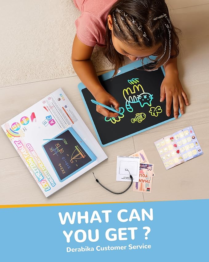 • ABSOLUTELY SAFETY TOYS FOR KIDS -- The battery compartment is secured with a screw. Our toddlers are not easy access button battery. Safety for kids. There may be scratches on the screen when opening the package, which is caused by transportation, just press the erase button and the screen will be clear