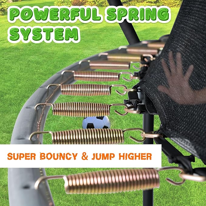 • 【High Jumping Power】Jump higher, laugh louder-backyard adventures await! The jump pad is made of competitive grade woven mesh fabric, which has been tested for tensile strength and has uniform elasticity without dead corners. Steel springs provide excellent jumping power, and when stepped on, it feels as light and powerful as being lifted by clouds.