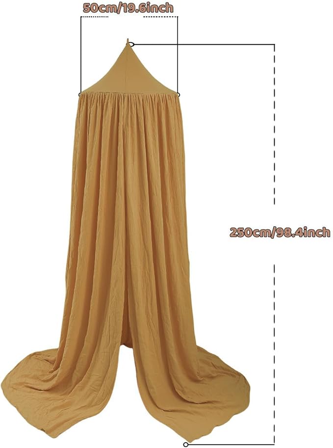 Cotton Kids Bed Canopy, Nursery Room Baby Crib Hanging Curtain Mosquito Net Hideaway Bedding Children Reading Nook Decoration, Pastel Neutral Color for Boys & Girls (Khaki)