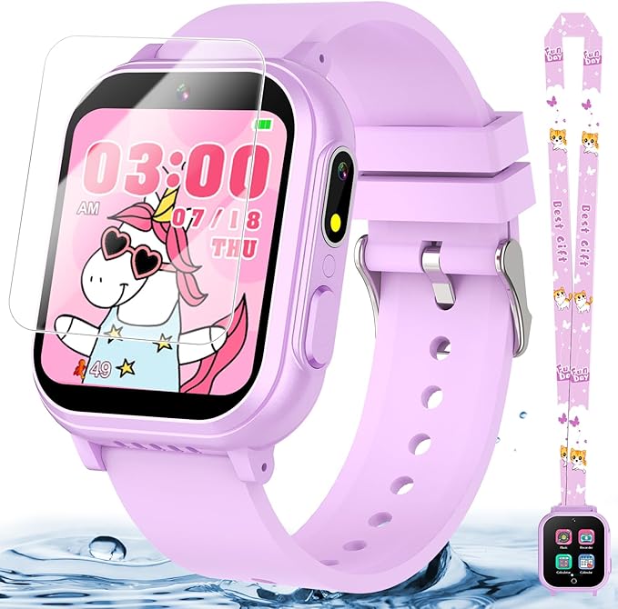 • 👍Durability and Waterproof: The kids watch is equipped with 2 sheets of screen protectors to protect against collisions and drops. Additionally, it includes a lanyard for added comfort and practicality. With the water resistance function, You don't have to worry about the normal use of your watch, even if you are swimming, washing your hands or exercising in the rain.