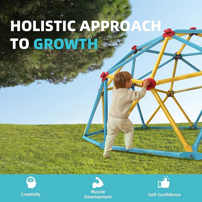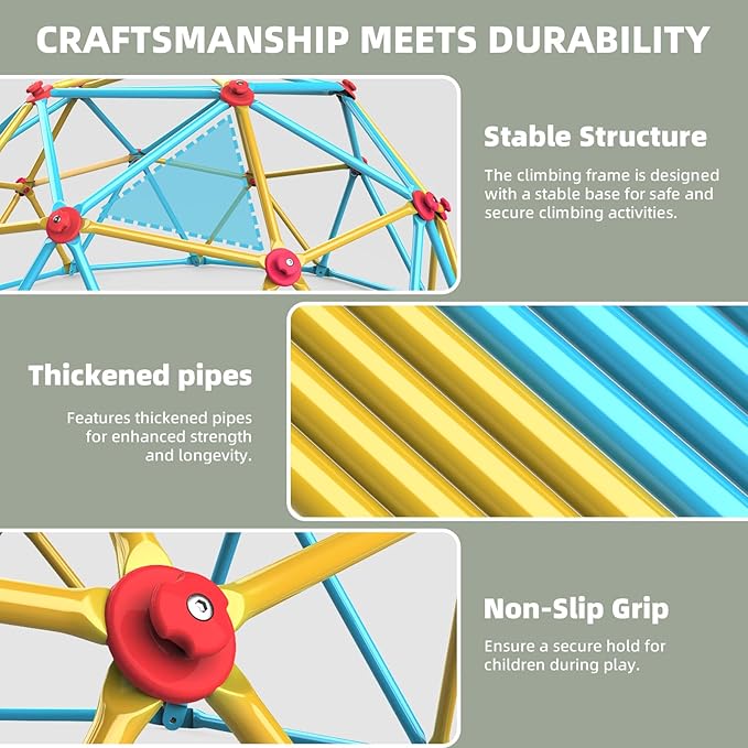 • Robust Construction: The geometric dome is crafted from thickened galvanized steel poles. The 1 in diameter poles exceed the standard market, supporting a load of 800 lbs. Rust-proof coating safeguard against scratches for kids.