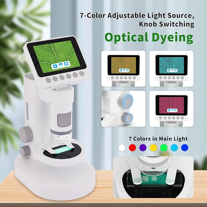 • Foldable Screen: The microscope for kids is equipped with a 3.5-inch high-definition screen that folds 90 degrees so you can adjust it as needed, and long-pressing the M button rotates the content on the screen