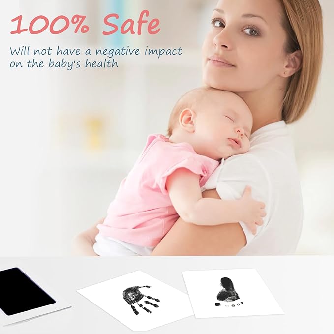 • [Safe Ink Pad]:This clean touch ink pad will not leave ink residue on baby foot. The baby footprint kit is 100% safe for your baby hands feet. New parents can safely use this baby handprint kit to print the baby handprint and footprint ,leave personalized newborn keepsake.