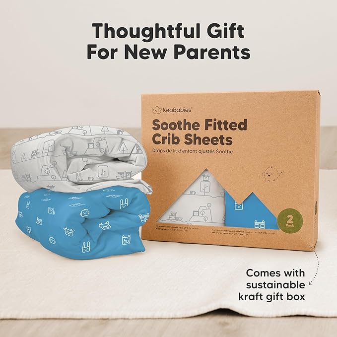 • 2-Pack Baby Crib Sheets - KeaBabies Soothe Fitted Crib Sheets for boys and girls; fit standard crib mattresses (52"x28" with height 3" to 8") perfectly, offering your baby a safe and restful sleep.
