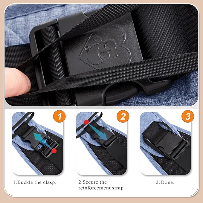 • 360°Safety and Double Protection:Equipped with a 6cm mountaineering-grade 360° rotating safety buckle and made of 600D high-density Oxford cloth, this baby carrier sling is slip-resistant and extra durable. The 10cm anti-slip safety rope provides additional protection, ensuring your child’s safety, making it an ideal toddler hip carrier for both everyday and outdoor use.