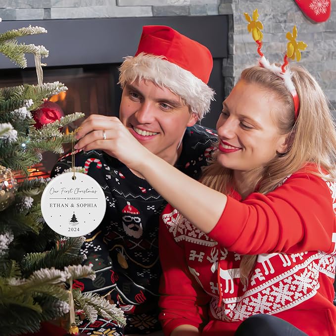 • 【Wedding Engagament Anniversary Ornament】This our first christmas 2025 is suitable for Christmas, Thanksgiving, Wedding, Engagement, Anniversary, Birthday, a new home or holiday tree decorations. Share the happiness of your first Christmas married/engaged with friends and family through this adorable ornament. It's more than just an ornament. It's a keepsake that serving as a timeless symbol of your love and the beginning of your lifelong journey together, capturing the cherished memories.