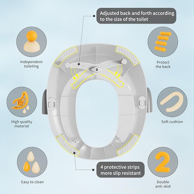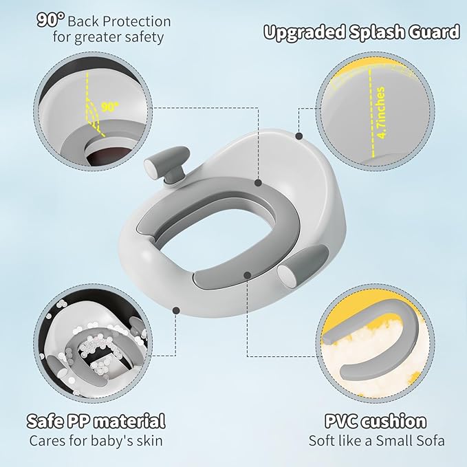 • SAFE AND STURDY TODDLER POTTY SEAT: Whatever, safe is to be first. By using environmental PP material, this potty training toilet is sturdy and can even hold up to 165 lbs, The handle of the toddler toilet seat makes you worry free even when your kids use it alone