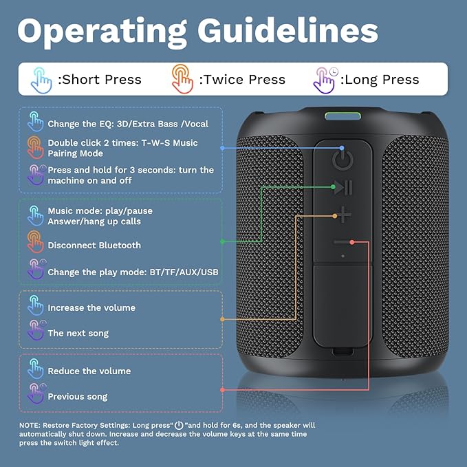 • [Rugged & Waterproof] Built for the outdoors, this speaker boasts a tough, shockproof design and an IPX7 rating, providing full protection against water immersion and harsh environments. Whether you're hosting a party, relaxing by the pool, hitting the beach, or embarking on a camping adventure, this speaker is ready to deliver exceptional sound no matter where you go.