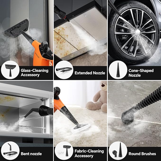 • 【Premium Materials】Constructed with high-temperature resistant PP material, the shell of our steam cleaner provides superior heat insulation, reducing the risk of scalding during use. Additionally, the handheld steam cleaner features a generous 9.8ft power cord, ensuring easy and convenient cleaning throughout your home.