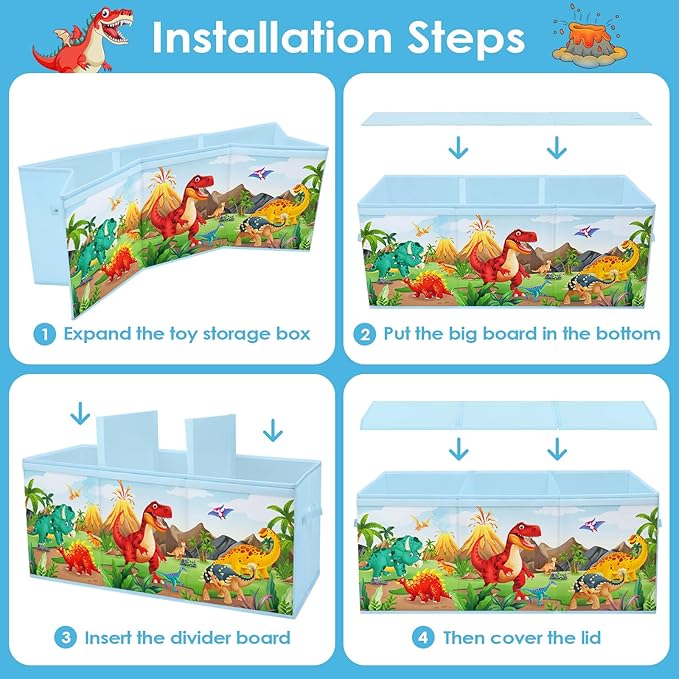 • 【Convenient Divider Design】 Our cube toy box is designed with a velcro flip lid, which helps to prevent dust from getting in, and there are two removable dividers in the center, which can be turned into different storage spaces, and large toys can be put, making it easy to reach for items.